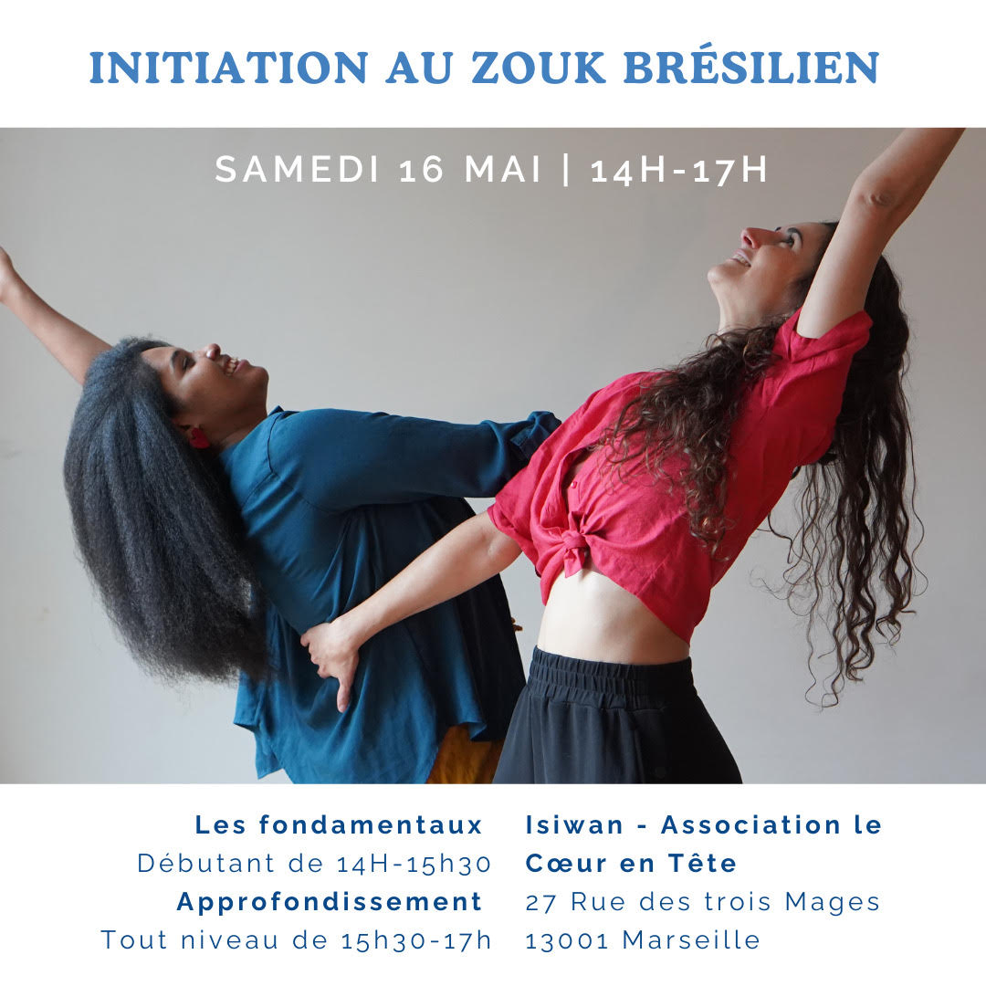 Nous sommes heureux.ses de vous accueillir pour le deuxième stage d’initiation de zouk brésilien organisé par le collectif Flow Motion en plein centre ville de Marseille à Isiwan – 27 rue des trois mages – le samedi 16 mai à 14h.